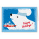 Niedlicher Eisbär mit Koch, der ein Abendessen mit Schneeflocken auf dieser kulinarischen Weihnachtskarte für Köche, Catering, Restaurants und andere Lebensmittel oder Kochprofis serviert.