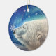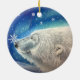 Ornament mit Polar Bear Snowflakes von Wildlife und Fantasy-Künstlerin Michaeline McDonald von einem lächelnden Eisbären mit einer Schneeflocke auf der Nase.