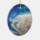 Ornament mit Polar Bear Snowflakes von Wildlife und Fantasy-Künstlerin Michaeline McDonald von einem lächelnden Eisbären mit einer Schneeflocke auf der Nase. Auf beiden Seiten bedruckt.