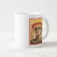Vintage Werbung für eine Szene am Nordpol, in der Eisbären Tasse Bierbrauen genießen, mit einem Trompe-l'oeil-Effekt, der überhitzte Menschen zeigt, mit Fans und Sonnenschirmen, und ein Mann, der die Szene für eine frostige frische und kalte Tasse Bierbrauer, die ihm von einem Eisbär angeboten wird, anreicht.