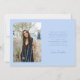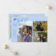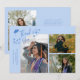 Moderne und wunderliche Abschlussanzeige mit Fotokarte mit 3 Fotos auf der Vorderseite und 1 auf der Rückseite. Der Text sagt "Danke" mit funkelnden Sternen. Fügen Sie den Namen des Absolventen, Informationen und eine Nachricht hinzu, um diese Karte zu personalisieren. Eisblau.