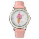 Kinderuhr aus Edelstahl mit rosa Lederarmband