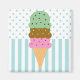 Dieses Design verfügt über eine Dreifach-Skop-Eistüte (Erdbeere, schokoladenweiße Schokolade-Chip und Minzschokolade-Chip) auf einem hellblauen Polka-Punkt und gestreiftem Hintergrund. Entworfen, um mit unseren "Ice Cream Cone" Produkten in der Stationery and Stuff Sektion unserer Galerie zu gehen.