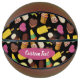 Ice Creme Icons auf schwarzem Hintergrund nahtloses Muster mit benutzerdefiniertem Text.