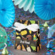 Eiscreme-Symbole. Nahtloses Muster. Benutzerdefinierte Hintergrundfarbe. Benutzerdefinierter Text auf beiden Seiten.