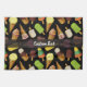 Eiscreme-Symbole. Nahtloses Muster. Benutzerdefinierte Hintergrundfarbe. Eigener Text.