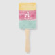 Einzigartiger, lustiger, farbenfroher Eis Party Kindergeburtstag Party Handfan entworfen, um wie eine Kugel Eis Kegel Popsicle Leckerei aussehen. Konfektioniert in fröhlichem Rosa, Gelb und aquamarin mit Konfetti, Sprinklen und Polka Dot Design Muster. Spaß typografische Nachricht "Allison Screams, You, Scream, We All Scream for Ice Cream" Der Name kann für ein einzigartiges personalisiertes Geburtstagskleifdesign geändert werden. Auf der Rückseite befindet sich ein Initial, der ebenfalls geändert werden kann. Fügen Sie Ihren kleinen Geburtstagsfeiern Einzigartigkeit mit diesem einzigartigen Eis-Kegel Geburtstagsparty Popsicle Hand Fan Design. Wir haben eine große Auswahl an passenden Geburtstagsgegenständen für dieses Eisdielen-Geburtstagsthema.