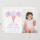 Diese niedliche Einladung enthält eine Eiscreme und Ballons in pastellfarbenen Regenbogenfarben mit Imitaten Goldfolie Confetti.