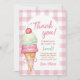 Ice Cream Pink Bow Gingham Geburtstagsparty Danke Karte