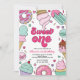 Süß eins! Cartoon-Stil Eiscreme, Sprinkles und Donuts und Kuchen Geburtstag einladen.