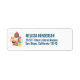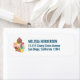 Rücksendeadressen-Aufkleber illustriert mit zeichn eines 3-teiligen Eissundae mit bunten Sprinklen. Eine Eistüte mit Schokolade, Erdbeere und Vanille. Eine Schüssel mit neopolitischem Eis und einer Kirsche auf der Oberseite. Erdbeeren und Ananas stehen neben den Schalen. Summerisch und süß.