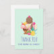 Eine Dankeschön-Karte. Illustriert mit dem zeichn einer 3-teiligen Eisdecke mit bunten Sprinklen. Eine Eistüte mit Schokolade und Vanilleeis. Eine Schüssel mit neopolitischem Eis und einer Kirsche auf der Oberseite. Erdbeeren und Ananas stehen neben den Schalen. Summerisch und süß.