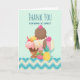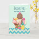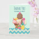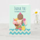 Ein Dankeschön Sie Grußkarte mit einer Nachricht im Inneren können Sie personalisieren. Illustriert mit dem zeichn einer 3-teiligen Eisdecke mit bunten Sprinklen. Eine Eistüte mit Schokolade, Erdbeere und Vanilleeis. Eine Schüssel mit neopolitischem Eis und einer Kirsche auf der Oberseite. Erdbeeren und Ananas stehen neben den Schalen. Das Zickzack, cremefarbene und blaue Muster am unteren Rand.