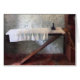 Entwürfe durch Susan Savad -- Eine der Aufgaben in einem viktorianischen Zuhause bügelte. Hier ist das Bügelbrett in einem sonnigen Raum vor einer mit Stuck verziert Wand mit einem altmodischen Eisen gründete alle gegründet worden, die bereit sind die, Blätter zu bügeln zu beginnen.