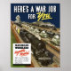 Dieses Vintage Poster des Zweiten Weltkriegs zeigt Züge, die ihre Ladung auf den Schienen beschleunigen. Es erklärt: "Hier ist ein Kriegsjob für Sie - Eisenbahnarbeiter dringend gebraucht. Anwenden Sie sich an ein Eisenbahnbüro oder einen Agent — an ein Büro des Eisenbahnrücktrittsverbandes — oder an den US-Anstellung Service." Feiern Sie mit diesem digital restaurierten Vintagen Kriegsposter aus dem The War Is Hell Store die amerikanische und die WW2-Geschichte. Woll mehr Militär- und Geschichtsprodukte? Karo