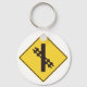 Ein Bahnübergangsschild auf gelbem Hintergrund. Dieses Design wirkt auf diesem Schlüsselanhänger wirklich effektiv