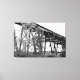 Schwarz-Weiß-Foto des Bahnsteiges, ca. 1920 in Ohio. Trestle noch in Gebrauch. Langlebiger Leinenprint, coole geometrische Formen und Geschichte.
