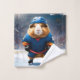 Das Eishockey-Guinea-Schwein ist auf Eiseis mit seiner HockeyUniform und seinen Skaten abgebildet.