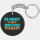 Hockey Thema Schlüsselanhänger mit Hockey-Pucks und Text, dass Eis Hockey ist My Therapy!