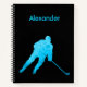Türkisfarbenes personalisiertes Hockey-Notebook mit Hockeyspieler - ein nützliches Eishockeygeschenk, um nach der Übung Notizen zu machen oder ein Tagebuch zu erstellen.