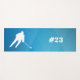 Vorderseite: Blauer Hintergrund + weiße Silhouette des Hockeyspielers + Personalisierung mit der Nummer des Hockeyspielers oder seines Namens.