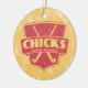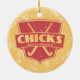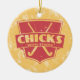 Retro Schild Design, mit gekreuzten Hockeyschläger und der Phrase Chicks With Sticks. Spaß Design für Feldhockeyspieler und Fans! Elemente können mit Ihrem eigenen Text angepasst werden. Feiertage / Weihnachtsschmuck. Karo mein Geschäft für viele weitere Designs mit einem coolen Weihnachtsgeschmack! Ideal für die Weihnachtsbäume von Sportfans und für Ihre sportlichen verrückten Familien und Freunde.