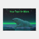 Ein friedlicher Moment in der langen arktischen Nacht. Ein Eisbär Erholungen am Rand eines offenen Bereichs im Packeis. Die Nordlichter leuchten in der Ferne; helle Sterne blinken über dem Kopf. Fügen Sie Ihren eigenen Text hinzu. Eisbären sind gefährdet. Wie lange werden solche Szenen noch stattfinden können? Helfen Sie bitte, Polarbären vom Aussterben retten.