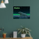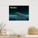 Ein friedlicher Moment in der langen arktischen Nacht. Ein Polarbär Erholungen am Rand eines offenen Bereichs im Packeis. Die Nordlichter leuchten in der Ferne; helle Sterne leuchten über dem Kopf. Der Text "Alaska" erscheint in grün und weiß. Eisbären sind gefährdet. Wie lange werden solche Szenen noch stattfinden können? Helfen Sie bitte, Polarbären vom Aussterben retten.