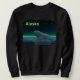 Ein friedlicher Moment in der langen arktischen Nacht. Ein Eisbär Erholungen am Rand eines offenen Bereichs im Packeis. Die Nordlichter leuchten in der Ferne; helle Sterne blinken über dem Kopf. Der Text "Alaska" erscheint in grün und weiß. Eisbären sind gefährdet. Wie lange werden solche Szenen noch stattfinden können? Helfen Sie bitte, Polarbären vom Aussterben retten.