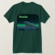 Ein friedlicher Moment in der langen arktischen Nacht. Ein Eisbär Erholungen am Rand eines offenen Bereichs im Packeis. Die Nordlichter leuchten in der Ferne; helle Sterne blinken über dem Kopf. Der Text "Alaska" erscheint in grün und weiß. Eisbären sind gefährdet. Wie lange werden solche Szenen noch stattfinden können? Helfen Sie bitte, Polarbären vom Aussterben retten.