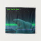Ein friedlicher Moment in der langen arktischen Nacht. Ein Eisbär Erholungen am Rand eines offenen Bereichs im Packeis. Die Nordlichter leuchten in der Ferne; helle Sterne blinken über dem Kopf. Fügen Sie Ihren eigenen Text hinzu. Eisbären sind gefährdet. Wie lange werden solche Szenen noch stattfinden können? Helfen Sie bitte, Polarbären vom Aussterben retten.