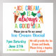 Eiscreme-Sozialposter. Eiscreme ist immer eine gute Idee. Laden Sie Ihre Freunde oder Nachbarn zu einem Abend Eis ein. Laden Sie diese digitale, anpassbare Einladung sofort herunter, oder bestellen Sie eine auf Papier gedruckte Einladung, oder lassen Sie sich beides überlassen.