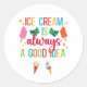 Eiscreme, soziale Rundkleber. Eiscreme ist immer eine gute Idee. Laden Sie Ihre Freunde oder Nachbarn zu einem Abend Eis ein.