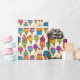Ihr Geschenk ist sogar süßer, wenn Sie es in diesem bunten Muster der Eiscreme-Leckereien einwickeln! Schließt Schaufeln der Erdbeere, der Vanille, des Limonen, Blaubeere, Orange und mehr, in den Kegeln und im Geschirr mit ein.