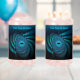 Ein blaues Fraktal-Bild, das einer wirbelnden Gruppe von Walen unter Polareis ähnelt; vielleicht Beluga- oder Minkwale, die die Pole häufen. Passen Sie Ihren eigenen Text an.