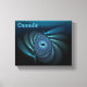Ein blaues Fraktal-Bild, das einer wirbelnden Gruppe von Walen unter Polareis ähnelt; vielleicht Beluga- oder Minkwale, die die Pole häufen. Text mit "Kanada" erscheint in leuchtendem Blau.