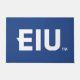 Dieses Design zeigt das fett gedruckte Blockbuchstabenlogo der Eastern Illinois University (EIU). Das Akronym "EIU" wird in einer starken serifenlosen Schrift prominent dargestellt und vermittelt ein Gefühl von Stabilität und akademischer Stärke. Die Buchstaben sind solide, tiefblau, farblich verknüpft mit der Universität, Set vor einem klaren, weißen Hintergrund für maximale Kontraste und Sichtbarkeit. Dieses Logo wird auf verschiedenen Plattformen zur Vertretung der Ost-Illinois-Universität verwendet, einschließlich akademischer Materialien, offizieller Dokumente und universitärer Waren. Geh EIU! Panther für das Leben!