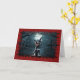 Diese einmalige Halloween-Karte verfügt über eine wunderbar unheimliche Drehung mit einem kleinen Schwarz-Weiß-Hund, möglicherweise einem Chihuahua, der in einen wilden, kleinen Vampir umgewandelt wurde. Der Hund hat scharfe Reißzähne in einer spielerischen Schnauze gebacken, die den Geist von Halloween perfekt einfangen. Der Hintergrund ist eine dunkle, unheimliche Szene mit Vollmond, flatternden Bäumen und einer Spuk Silhouette, die die unheimliche Atmosphäre verstärkt. Die Karte ist von gezackten roten Kanten umgeben, die wie zerrissenes Papier aussehen, wodurch sich das unheimliche Aussehen der Karte verbessert.