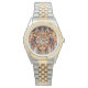 Die Ekstasis-Uhr - Symmetrie Opulente Edition von Reynaud de Madrid verbindet den barocken Überschwang mit einer kühnen Taste. Sein Zifferblatt ist reich mit komplexen symmetrischen Mustern, goldenen Spiralelementen und Schmuckstücken versehen, die an die Barockpalast erinnern. Übertriebene Details und scharfe Farben verstärken das kitschige Aussehen und erzeugen einen auffälligen Kontrast. Die Ekstasis-Uhr - Symmetrie Opulente Edition ist eine nicht unauffällige Uhr, die für diejenigen bestimmt ist, die es wagen, ihren Geschmack für Extravaganz zu zeigen.