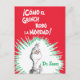 A vibrant and striking book cover, primarily in a festive red and white color scheme, featuring a large, mischievous illustration of The Grinch centered against a dynamic, jagged green and white explosion graphic. The title, "¡CÓMO EL GRINCH ROBÓ LA NAVIDAD!" is displayed prominently in large, playful white letters, capturing the story's theme in Spanish. The author's name, "Dr. Seuss," is written in contrasting green text. The overall design is bold, graphic, and instantly recognizable, evoking the classic holiday narrative.