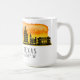 Die Tasse beinhaltet die Skyline-Silhouette der Stadt El Paso Texas mit den Koordinaten der Breiten- und Längengradkarte und der Aquarellfärbung des Sonnenuntergangs