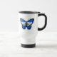 Dieses einzigartige Ausrüstungsbeschreibungen die Flagge von El Salvador auf einem schönen Schmetterling. Die Flaggenkonturen zu den Details in den Flügeln und zu den Kurven um den Körper des Schmetterlinges, der ihm einen realistischen Blick gibt. Die Ränder der Flügel werden schwarz gemalt, das die El Salvador Flagge innerhalb des Musters gestaltet. Dieses wunderbare Fliegengeschöpf ist eine perfekte Kombination der Natur und des Patriotismus.