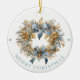 Simple and elegant Christmas ceramic ornament with beautiful dusky blue holiday Wreath on a white background. Personalize the backside with Name and Date.