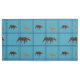 Klassisches Outdoorsy-Camping-Muster; Elche auf aquamarinem blauen Schachbrett.