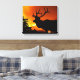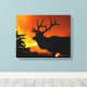 Ein Elch steht auf einem Hügel, während ein Laubbrand hinter ihm wütet. Seine Silhouette sticht scharf gegen das Feuer im Hintergrund hervor.