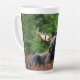Elche Latte Tasse. Wunderschönes Foto eines majestätischen Elchs, der sich in einem Feld von Wildblumen zurückzieht. Foto von Shivam Kumar.