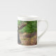 China der Elchknochen Tasse. Wunderschönes Foto eines majestätischen Elchs, der sich in einem Feld von Wildblumen zurückzieht. Foto von Shivam Kumar.