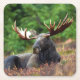 Untersetzer zum Elch-Quadrat Wunderschönes Foto eines majestätischen Elchs, der sich in einem Feld von Wildblumen zurückzieht. Foto von Shivam Kumar.