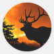 Ein Elch steht auf einem Hügel, während ein Laubbrand hinter ihm wütet. Seine Silhouette sticht scharf gegen das Feuer im Hintergrund hervor. Computerkunst von Kathie Miller.