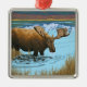 Elch-Trinkwasser-Vintages Reise-Plakat Silbernes Ornament